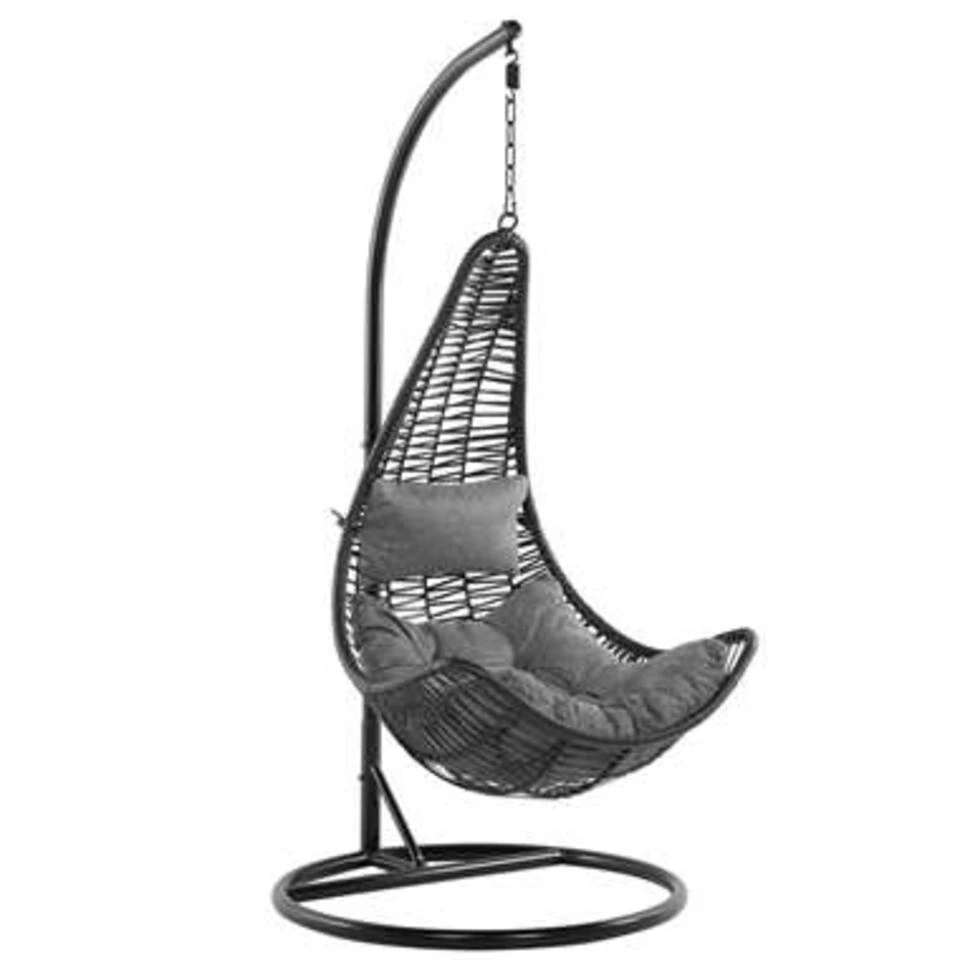 Comfortabele hangstoel met kussen. Met zijn licht gebogen frame biedt deze prachtige hangstoel absoluut comfort. Het solide stalen frame garandeert maximale stabiliteit, terwijl het zachte zitkussen dit geweldige meubel nog comfortabeler maakt. De zetel past bijzonder goed bij bohemien of moderne inrichtingsstijlen en is een fantastische plek om te ontspannen.