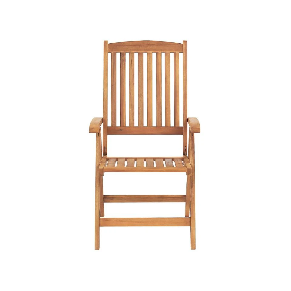 Belangrijkste eigenschappen: Rugleuning verstelbaar in 6 posities, Praktische touwtjes voor gemakkelijke bevestiging aan de zitting, Perfect gevormde armleuningen, Gemaakt van natuurlijk resistente materialen, UV-bestendigheidsklasse 5 (ISO 105-B02), Opgevouwen op te bergen
