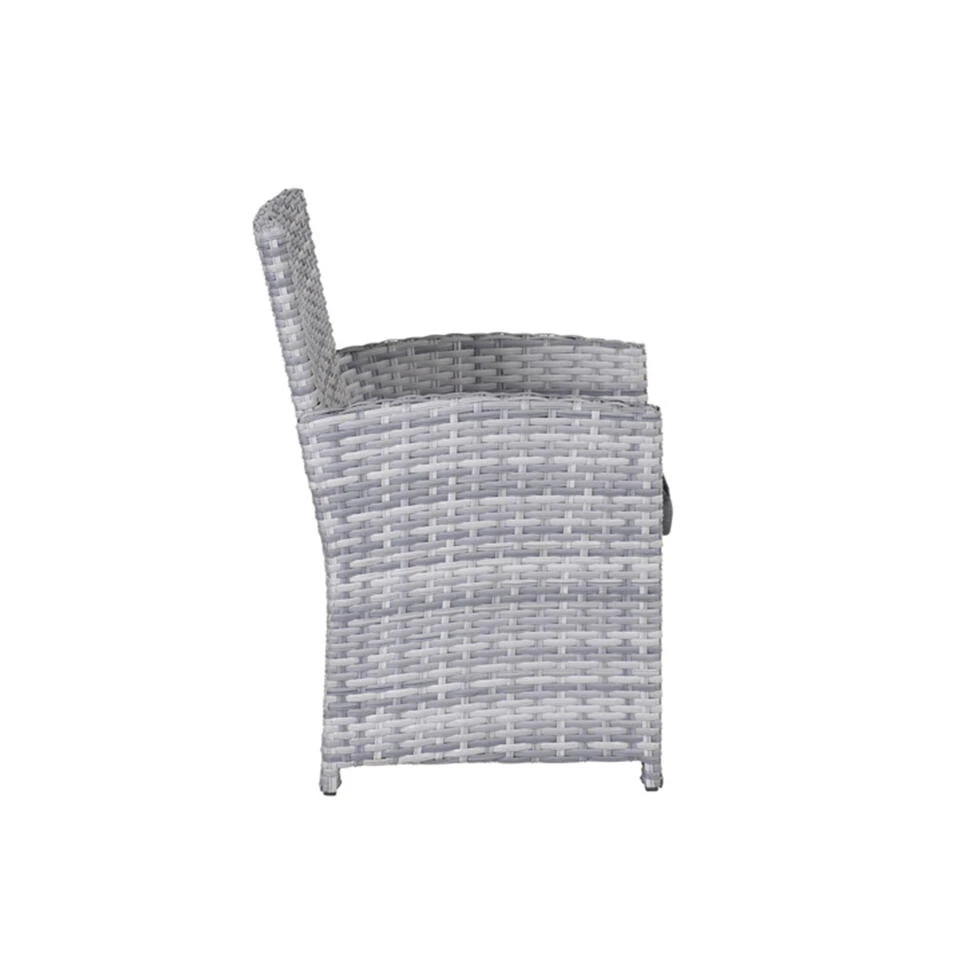 Deze dining fauteuil is vervaardigd uit een onderhoudsvrij aluminium frame met daaromheen weerbestendig L-shape wicker draad, waardoor je het hele jaar kunt genieten van deze mooie lounge dining set. Het wicker is gemaakt van een stevig kunststof waardoor de set zeer duurzaam is.
