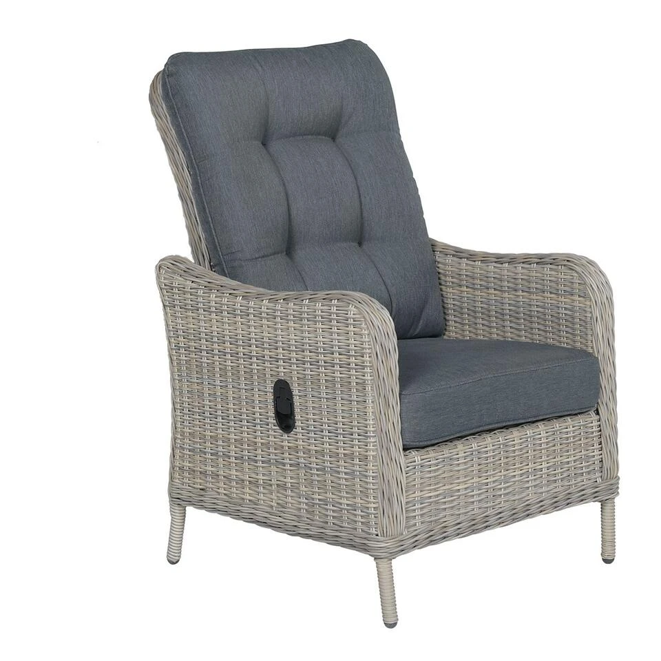 Heerlijk wegdromen kun je zeker in de Nova verstelbare tuinstoel. Met deze stoel kun je alle kanten op. Of je nu een goed boek wilt lezen, lekker wilt zonnen of gewoon buiten dineren, het kan allemaal! De Nova verstelbare stoel wordt compleet geleverd met dik zit- en rugkussen. Dat je heerlijk kunt wegdromen in deze stoel, dat zie je direct, maar deze stoel is daarnaast ook vervaardigd uit hoogwaardige kwaliteit materialen. De stoel is vervaardigd uit een onderhoudsvrij aluminium frame en weerbestendig half rond wicker kunststof vlechtwerkdraad in de kleur vintage willow. Het draad heeft een dikte van maar liefst 5mm, wat zorgt voor een robuuste uitstraling. Wicker is een stevig en duurzaam kunststof, waardoor je jarenlang kunt genieten van de Nova verstelbare tuinstoel. Het zit- en rugkussen is gemaakt van een hoogwaardige kwaliteit polyester. Het zitkussen is voorzien van een rits, waardoor het hoesje gemakkelijk met de hand gewassen kan worden. De rugkussens zijn voorzien van extra stiksels waarmee de stof op twee plekken naar elkaar wordt getrokken, wat zorgt voor een klassieke uitstraling. Deze stijlvolle look is geïnspireerd op de bekende klassieke chesterfield banken. De kussens zijn niet 100% waterdicht, maar zijn wel voorzien van een waterafstotende coating. Dit is vooral erg praktisch als er bijvoorbeeld op het kussen wordt gemorst met drinken. Je veegt het vocht er namelijk gemakkelijk weer af. Na gebruik kunnen de kussens opgeborgen worden in de schuur of een mooie kussenbox. Deze Nova stoel is traploos verstelbaar (d.m.v. een gasveer), waardoor je gemakkelijk de rugleuning in iedere gewenste positie kunt zetten.Voor behoud van de gasveer is er gebruik gemaakt van een koker met kunststof sluitingsranden om de gasveer. Dit voorkomt dat er zomaar vocht bij de gasveer kan komen. Uiteraard kan door de jaren heen er wel wat vocht bij komen. Om dit zoveel mogelijk te beperking wordt er aangeraden om de stoelen bij nat of vochtig weer af te dekken met een passende beschermhoes. De verstelbare Nova stoel kun je los aanschaffen, maar past ook perfect bij de andere tuinmeubelen uit de Nova serie. Zo combineer je deze stoel bijvoorbeeld met de Nova dining tafel of met een complete hoekbank opstelling. De nova meubels zijn leverbaar in diverse kleurstellingen. De afmetingen van deze stoel zijn: B 72 x D 77 x H 85 cm.