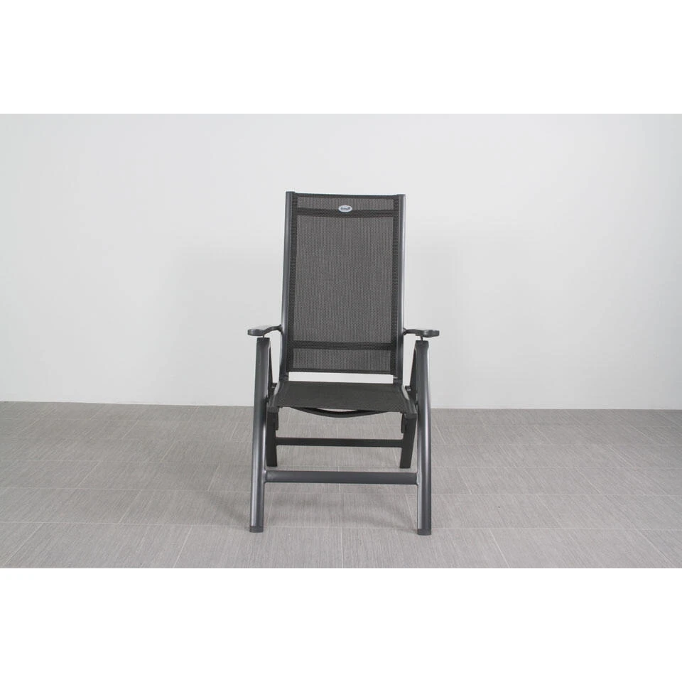 De verstelbare tuinstoel heeft een aluminium frame. De stoel heeft een textileen zit en rugleuning. De armleuning van de stoel is van aluminium. Door deze materialen te combineren heeft u een stevige maar ook een zeer mooie stoel. De stoel is te verstellen in meerder standen zodat hij perfect zit tijdens het eten maar dat u ook lekker in het zonnetje kunt gaan zitten met de rugleuning in de relax modus.