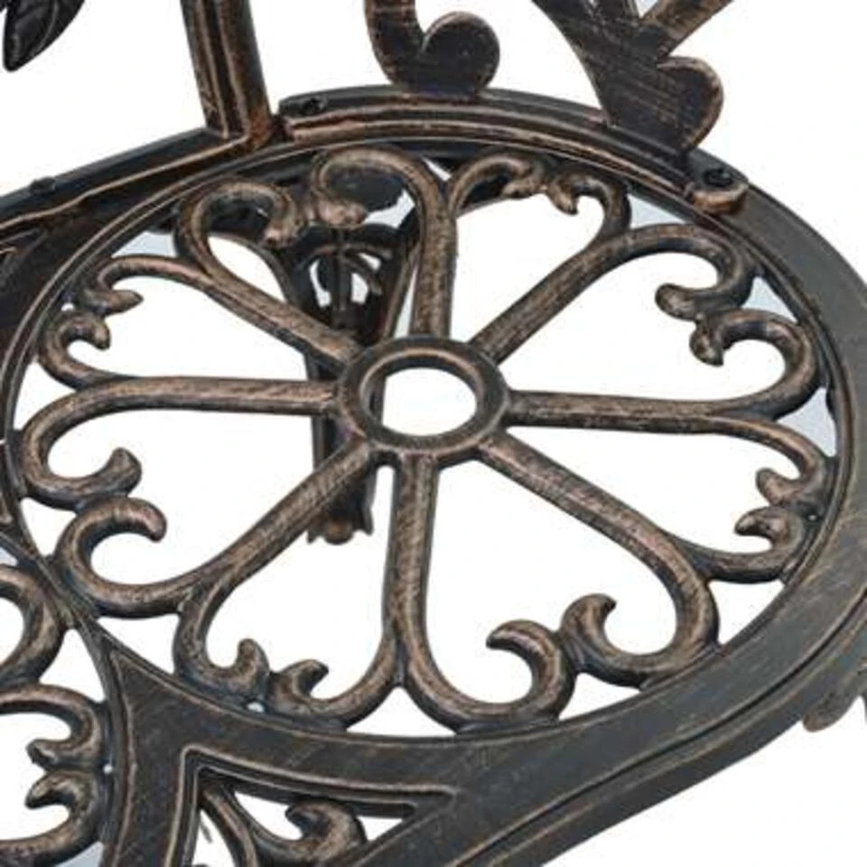 - Materiaal: gegoten aluminium rugleuning/zitting/armsteun + gietijzeren poten